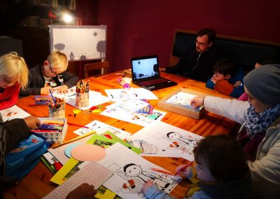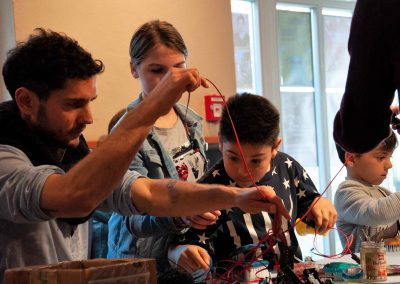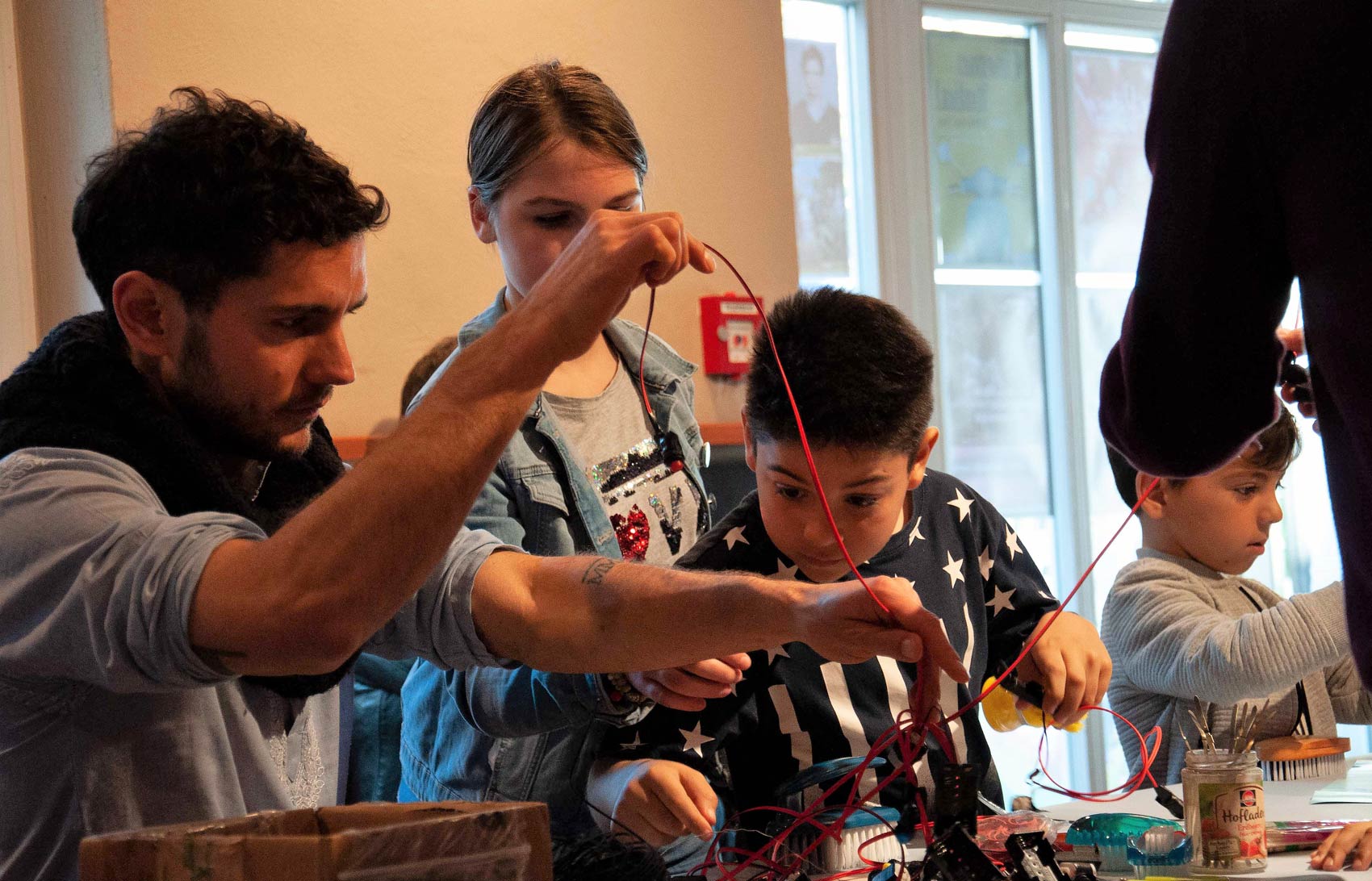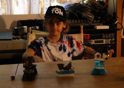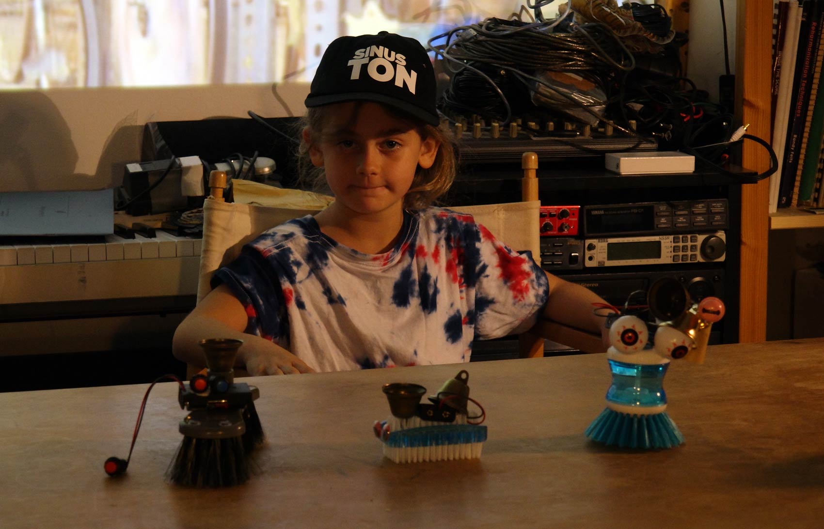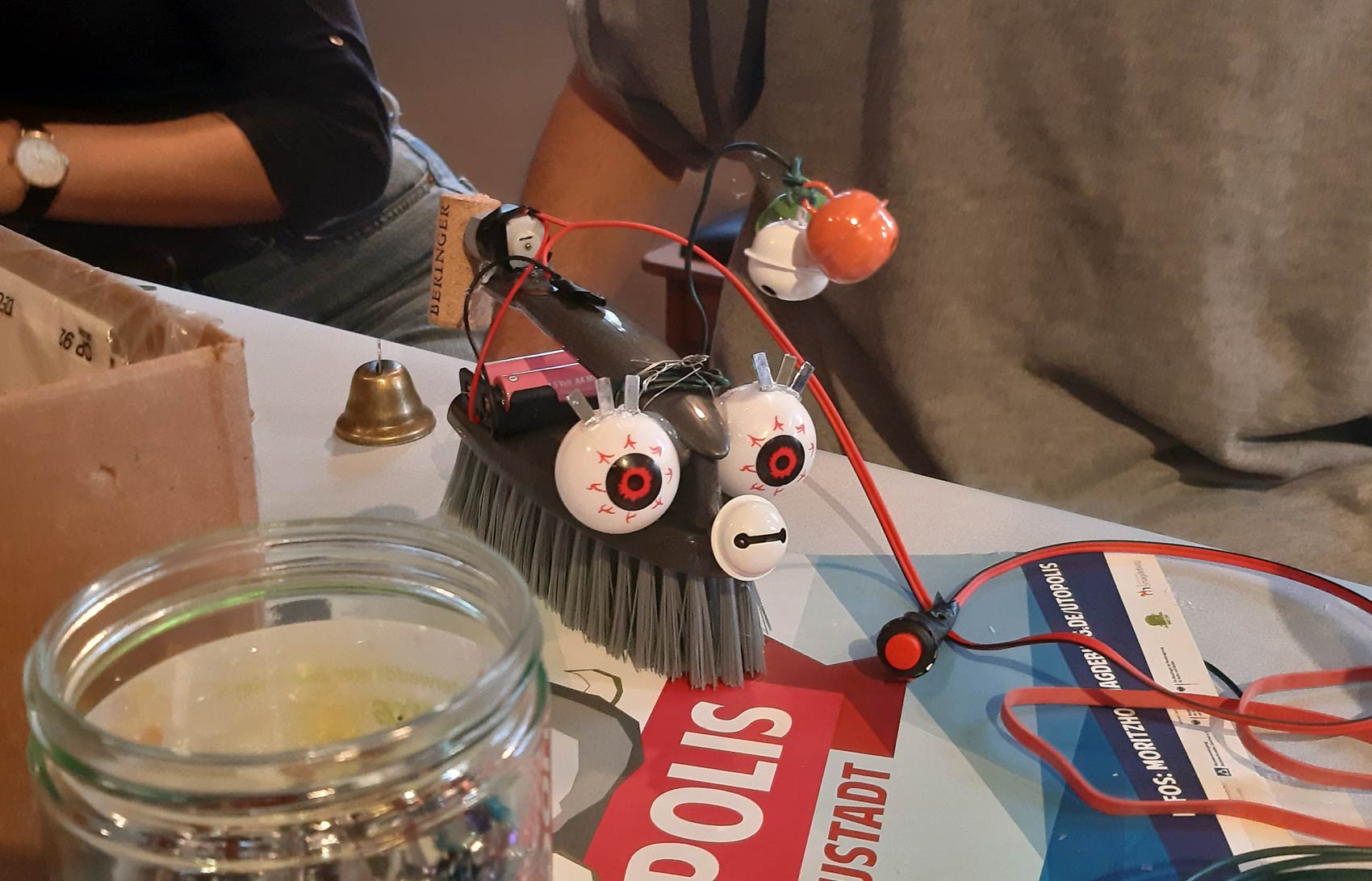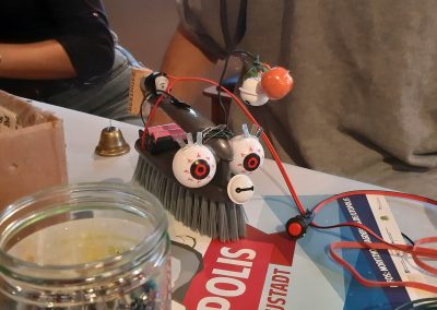 Unter Anleitung unserer jüngsten Referentin Auriane (9 Jahre) konnten gleichaltrige Kids aus Bürsten und allerhand elektronischem Equipment Roboter bauen, die die selbstaufgenommenen Geräusche und Töne abspielten. Ein großer Spaß für alle Beteiligten!