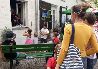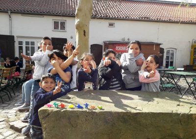 In Kooperation mit der GS und der Schulsozialarbeit wurden unter Anleitung von Künstler:innen regelmäßige Workshops am Nachmittag angeboten: „Rhythmus aus der Tonne“, bei der Alltagsgegenstände zu Drums wurden ,sowie „Breakdance“, an denen alle Kids der ersten bis vierten Klasse zur Teilnahme eingeladen waren. Damit wurden musikalisch-tänzerische Angebote geschaffen, die die Kids im Alter zwischen 6 und 10 Jahren mit Rhythmus und Takt in Kontakt brachten, das Miteinander und die Teamfähigkeit erweiterten, um eine Trommel- und/oder Tanzgruppe zu werden. Die Ergebnisse wurden im Rahmen des KulturSommerFestes 2019 auf dem Moritzplatz präsentiert.