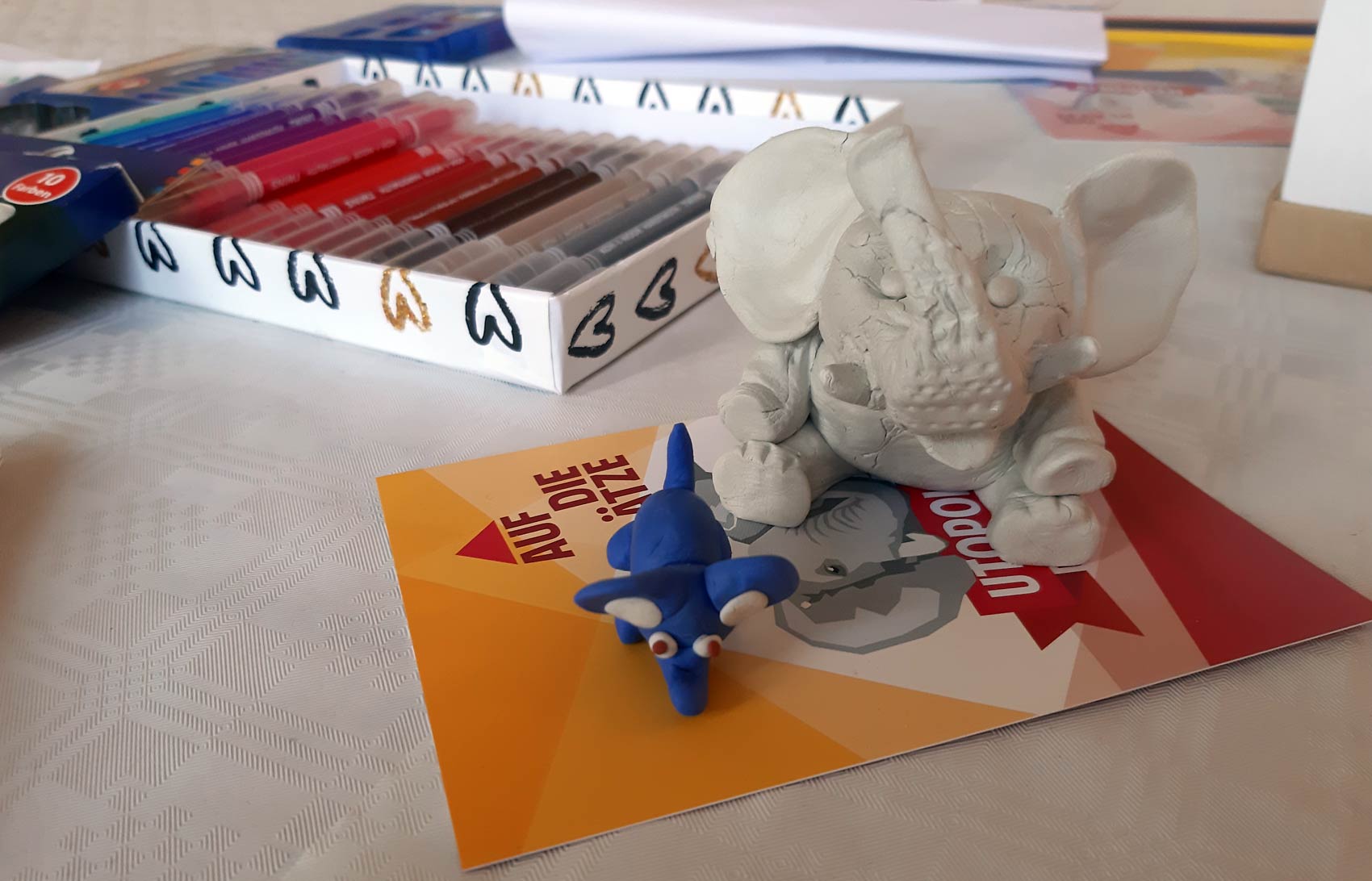 „Auf die Plätze…“ jetzt geht es los: Eingeladen waren Jung und Alt, unserem Elefanten einen Namen* zu geben. Bei kreativen Workshops rund ums Thema wurden Elefanten gemalt, gebastelt und plastiniert. Ganz nebenbei kam man ins Gespräch über das Leben im Quartier, man lachte und lernte sich besser kennen. Die entstandenen ElefantenFiguren konnten sogleich als Spielfigur beim erfundenen NeustadtSpiel eingesetzt werden.