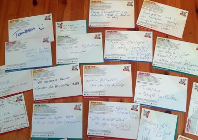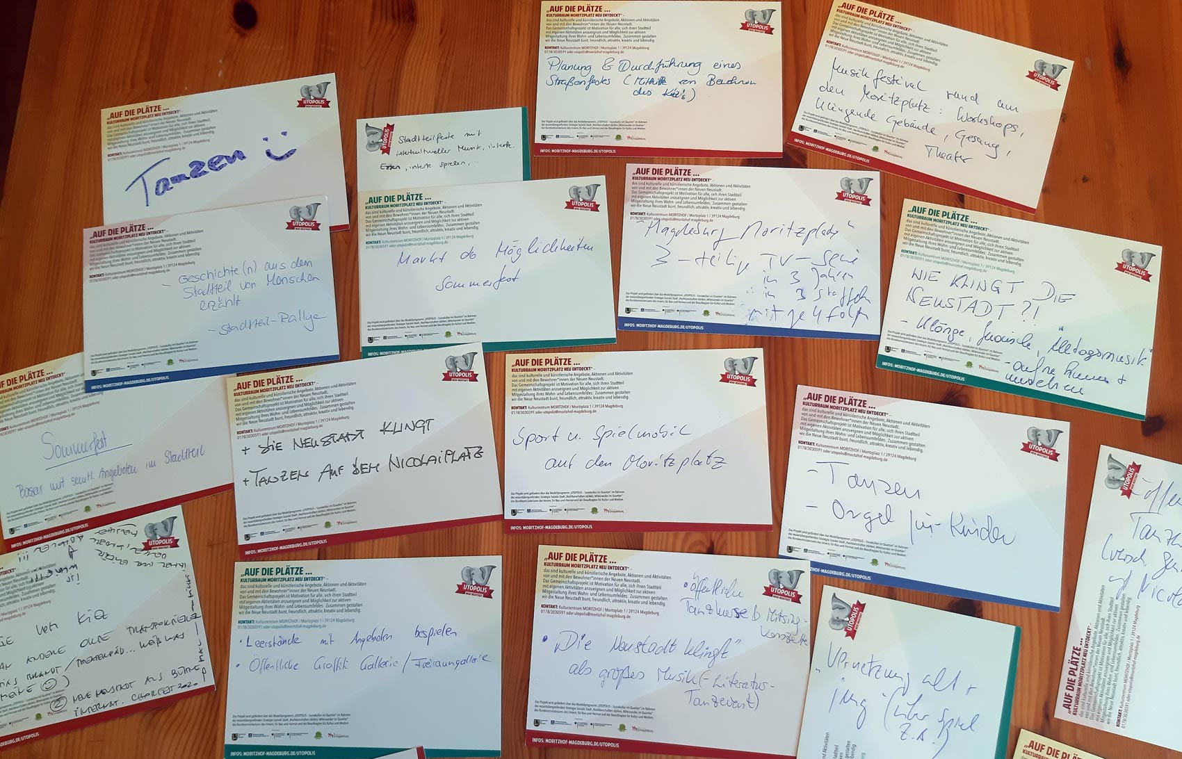 Viele der hier entwickelten Idee wurden im Laufe der Projektzeit umgesetzt, wie beispielsweise „Offenes Singen“ und Tanzen auf dem Moritzplatz, Sport und Spiel für alle Generationen, Brache zur Spielwiese u.a. Kunst durch Sperrmüll, NeustadtKlänge einfangen, etc. Fazit: Hier wurden die Grundsteine für Kooperationsprojekte gelegt, die im Laufe des Projektes umgesetzt wurden.